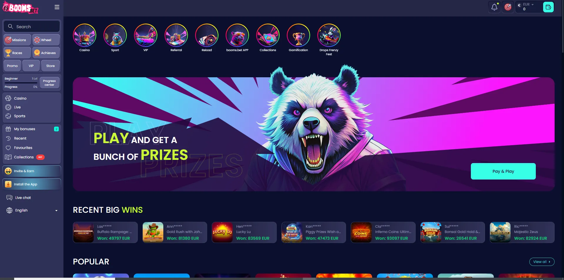 BoomsBet staat geregistreerd in Costa Rica en is van dezelfde eigenaar als Trueluck. Je kunt kiezen uit ruim 4000 spellen van 45 providers als Pragmatic Play en Play ‘n Go. Uitbetalingen duren gemiddeld tussen de 12 en 24 uur.